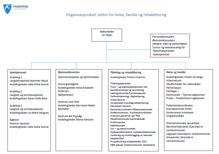 Familiehuset (helsestasjon, IP-koordinator, folkehelsekoordinator) er underlagt sektoren i ny organisasjonsstruktur fra 01.01.2021.